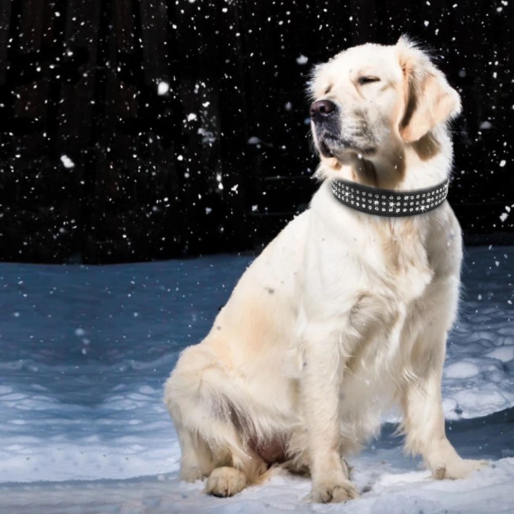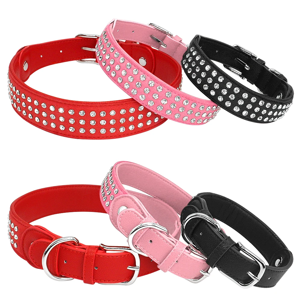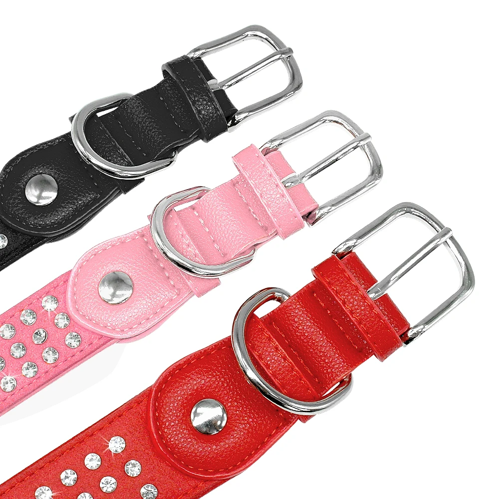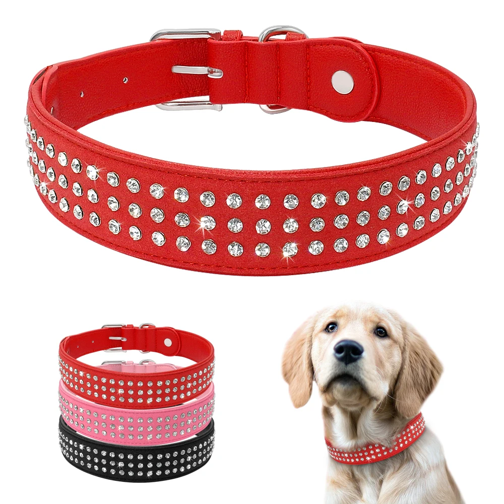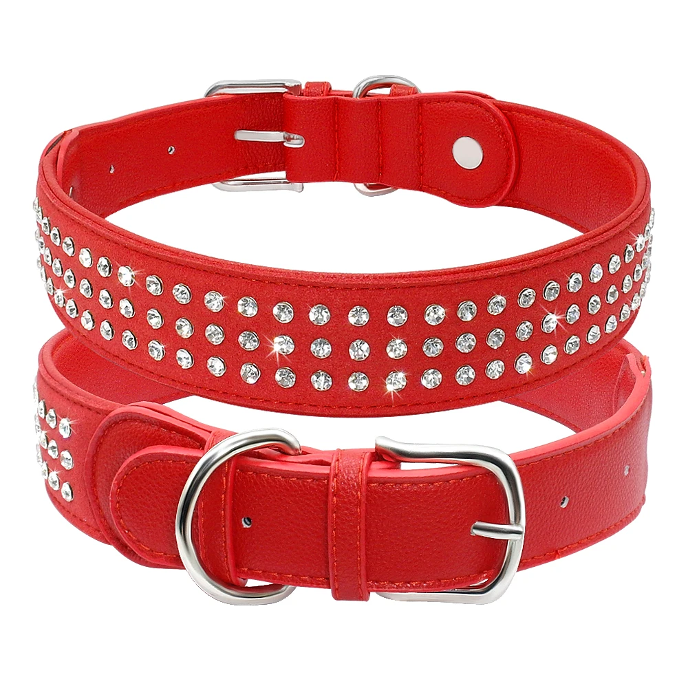 Type: Bling Rhinestone Dog Collar Adjustable Crystal Diamond Leather Collar Perro For Meidum Large Dogs Black Red M/L/XL