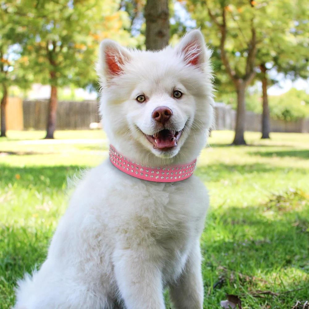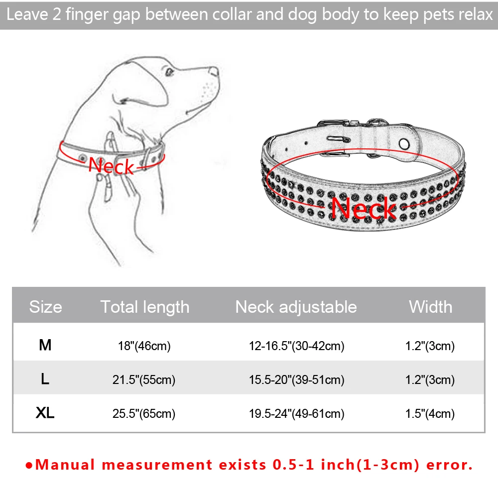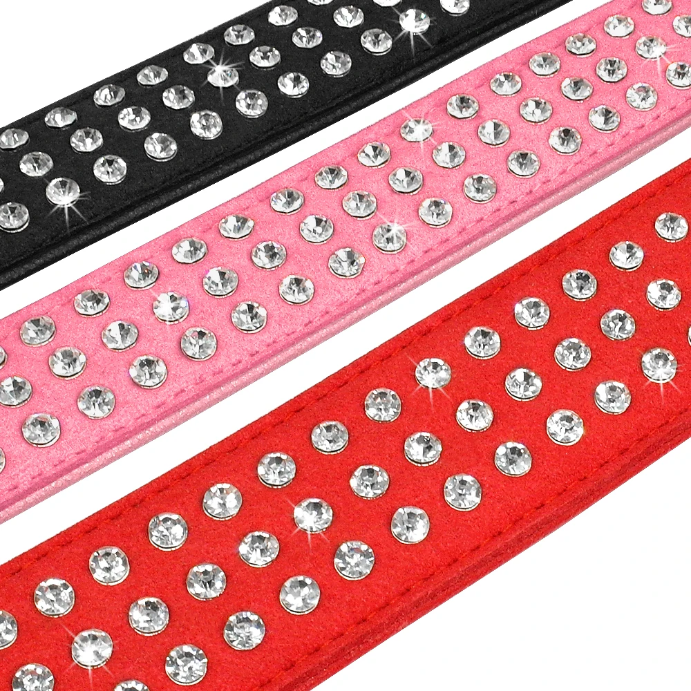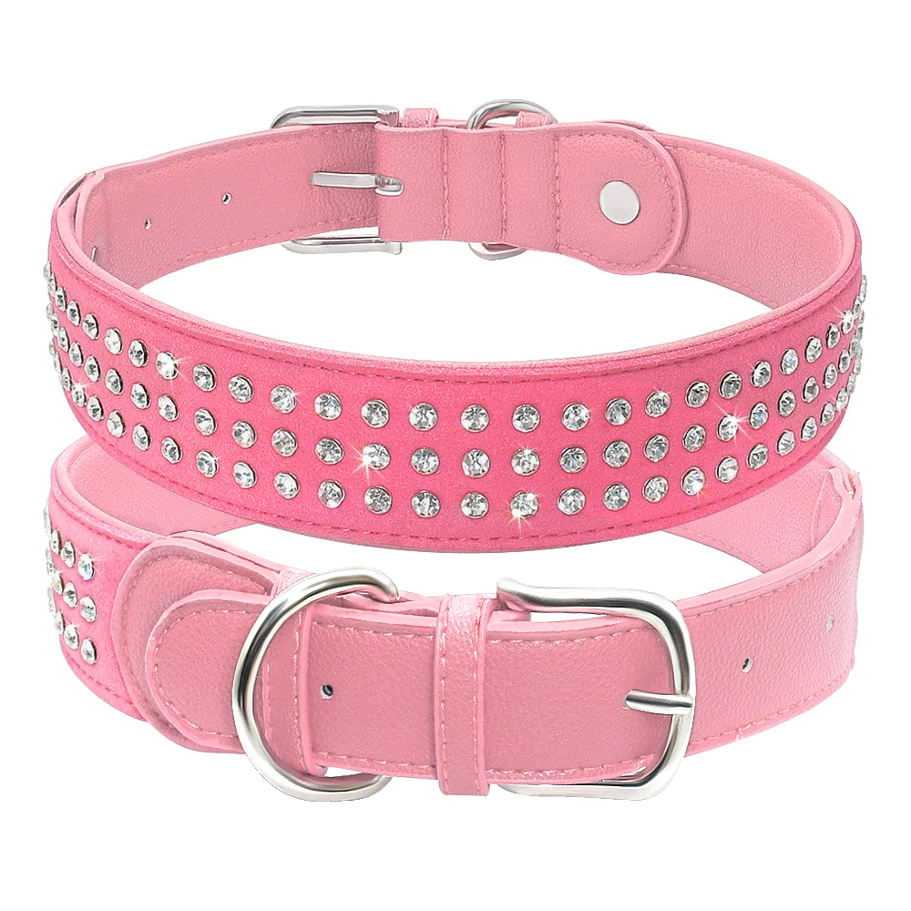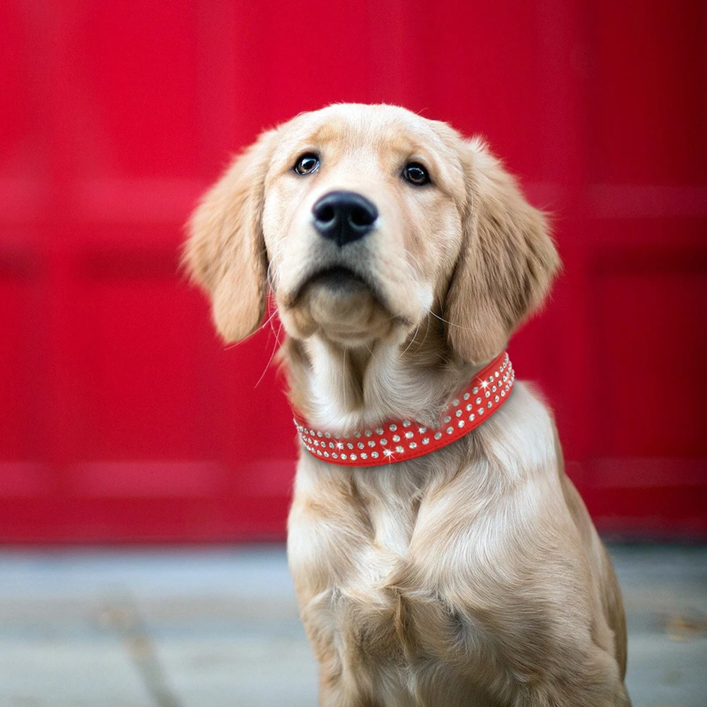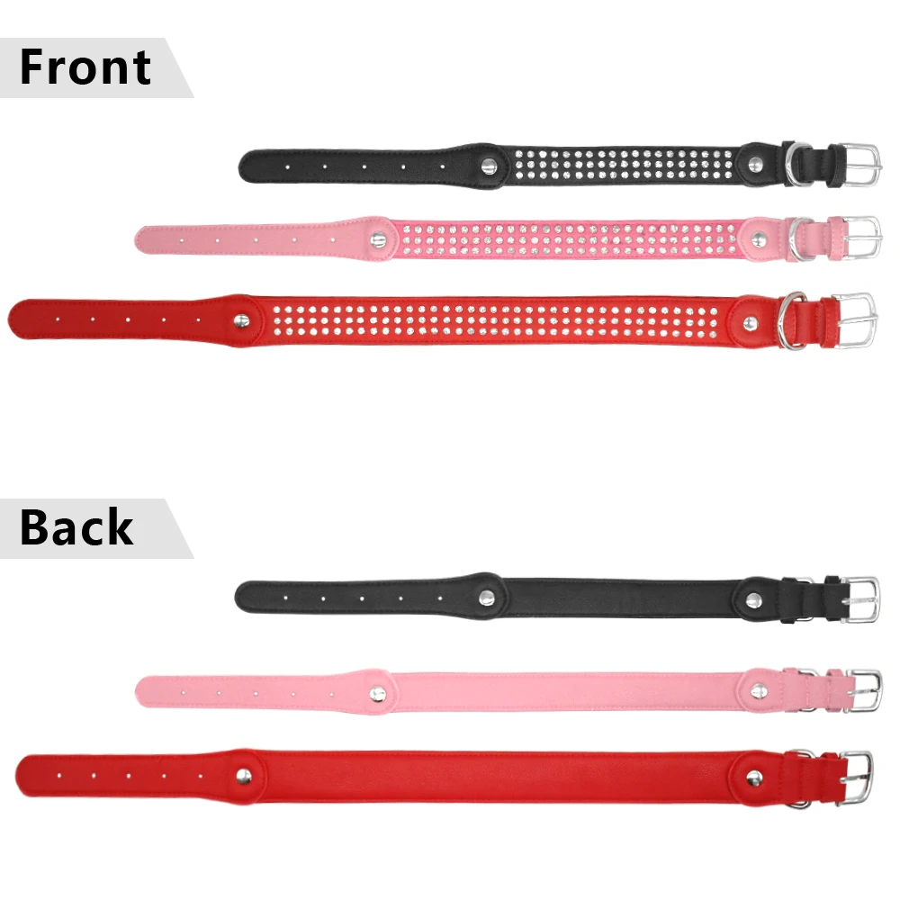 Type: Bling Rhinestone Dog Collar Adjustable Crystal Diamond Leather Collar Perro For Meidum Large Dogs Black Red M/L/XL