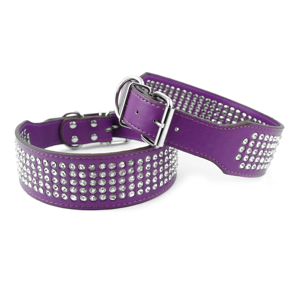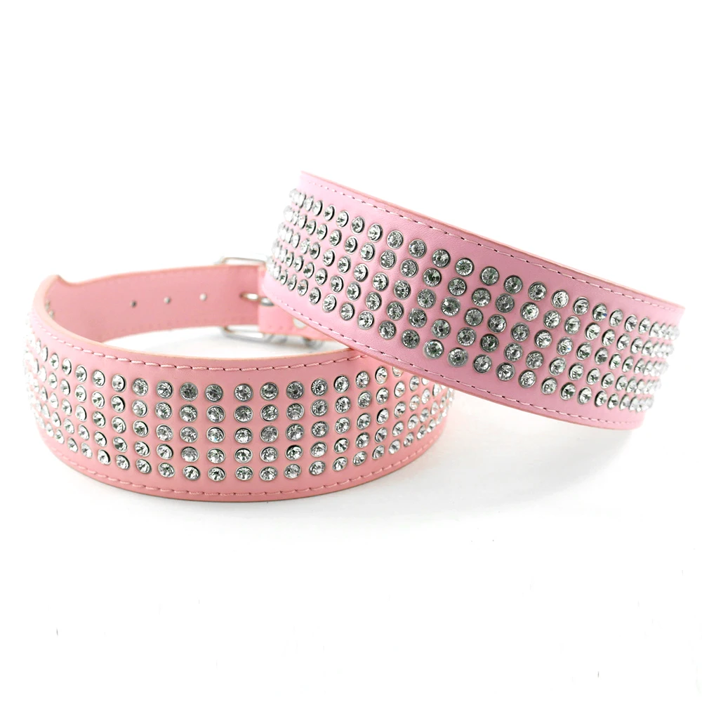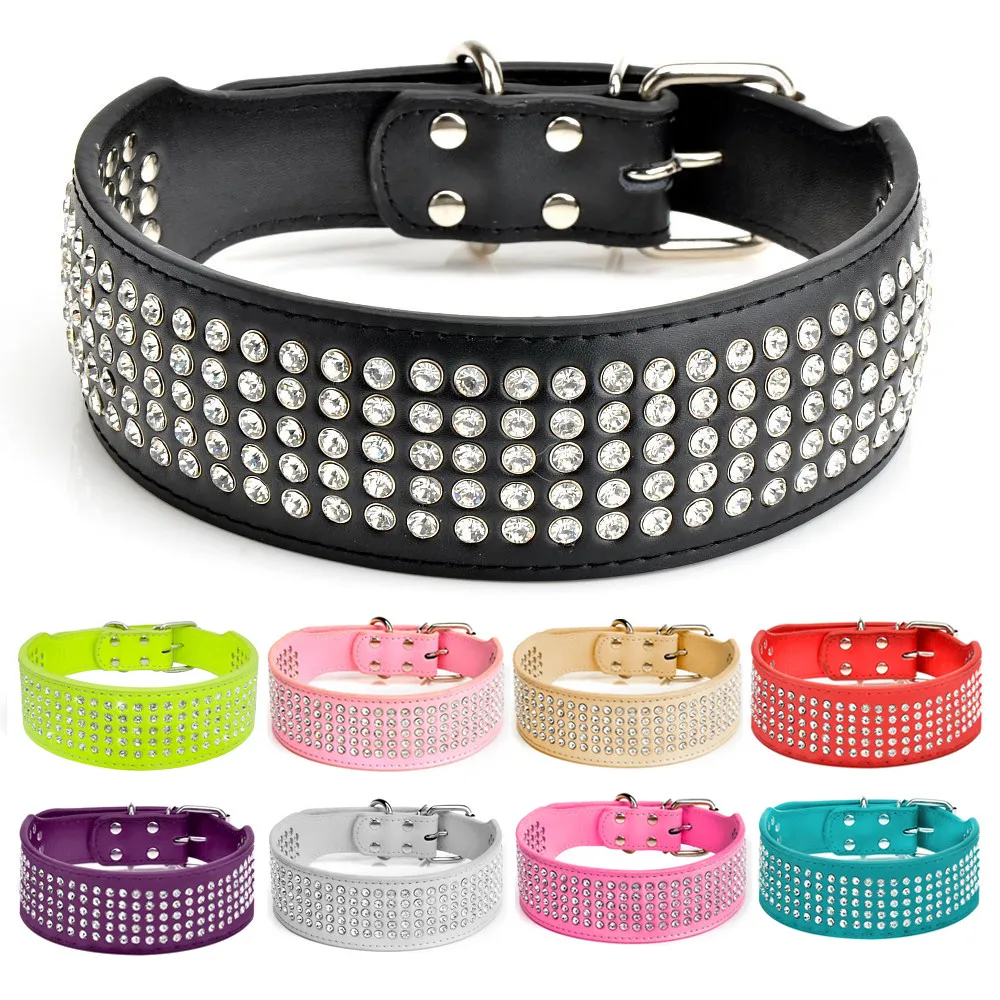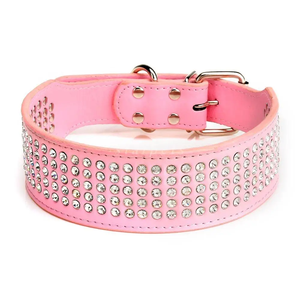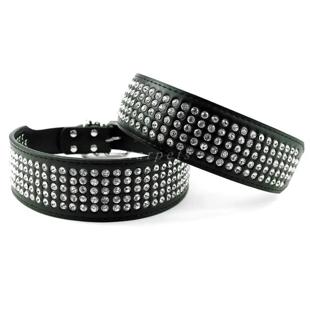 - Stunning beautifully leather dog collar with 5 rows of Rhinestones