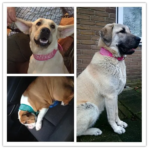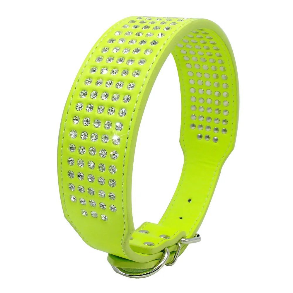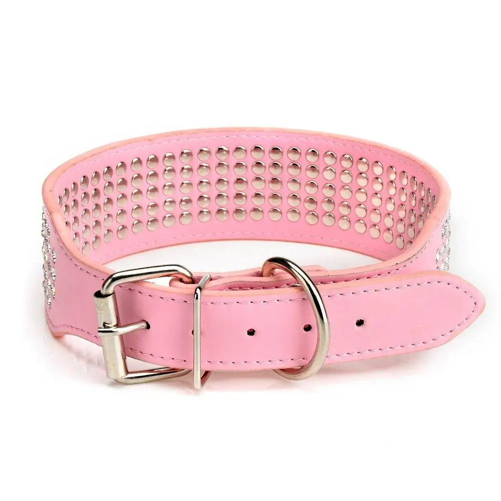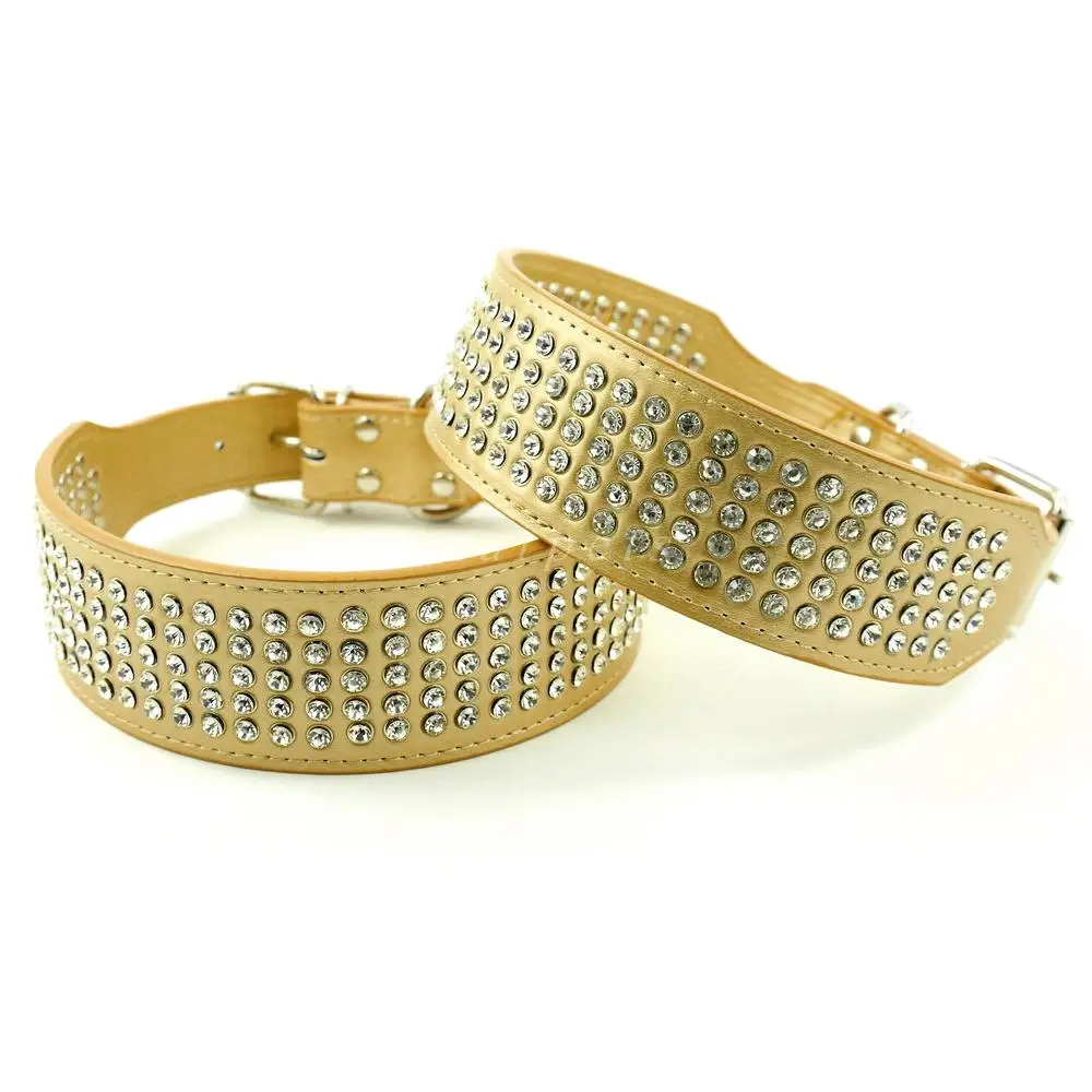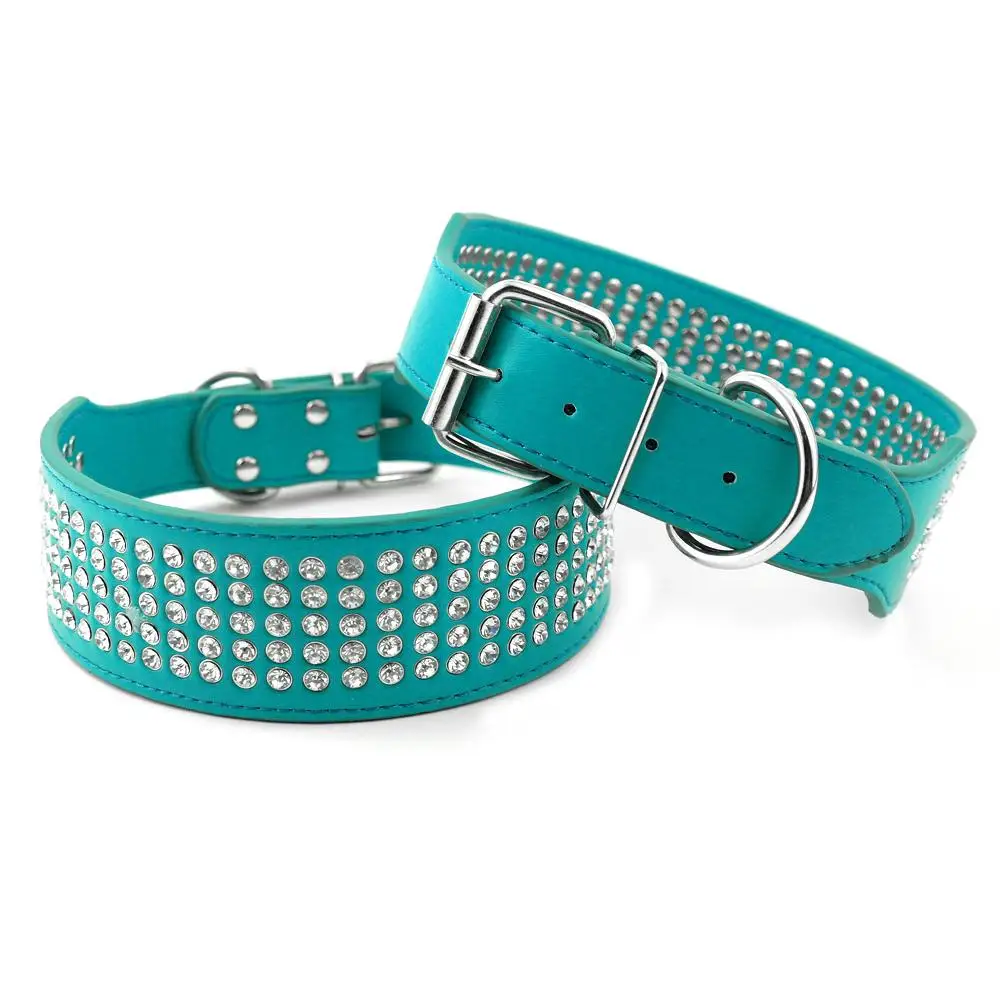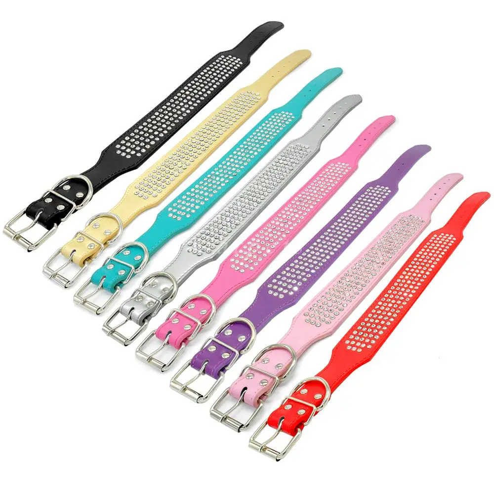 - Stunning beautifully leather dog collar with 5 rows of Rhinestones