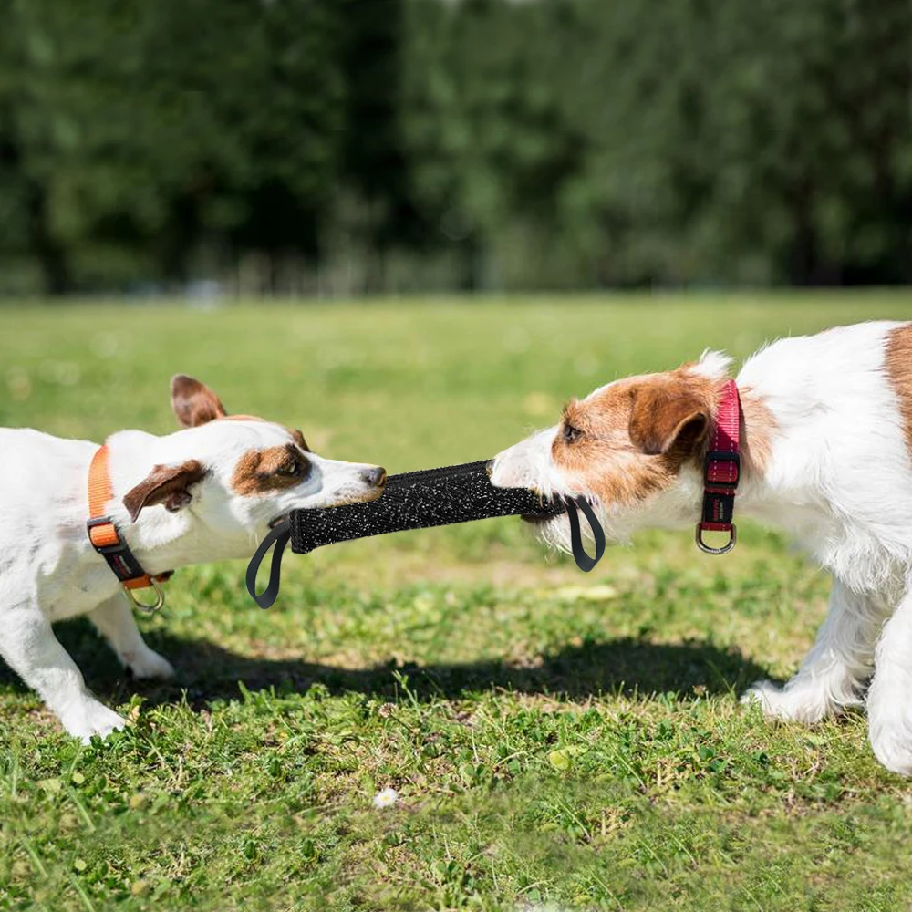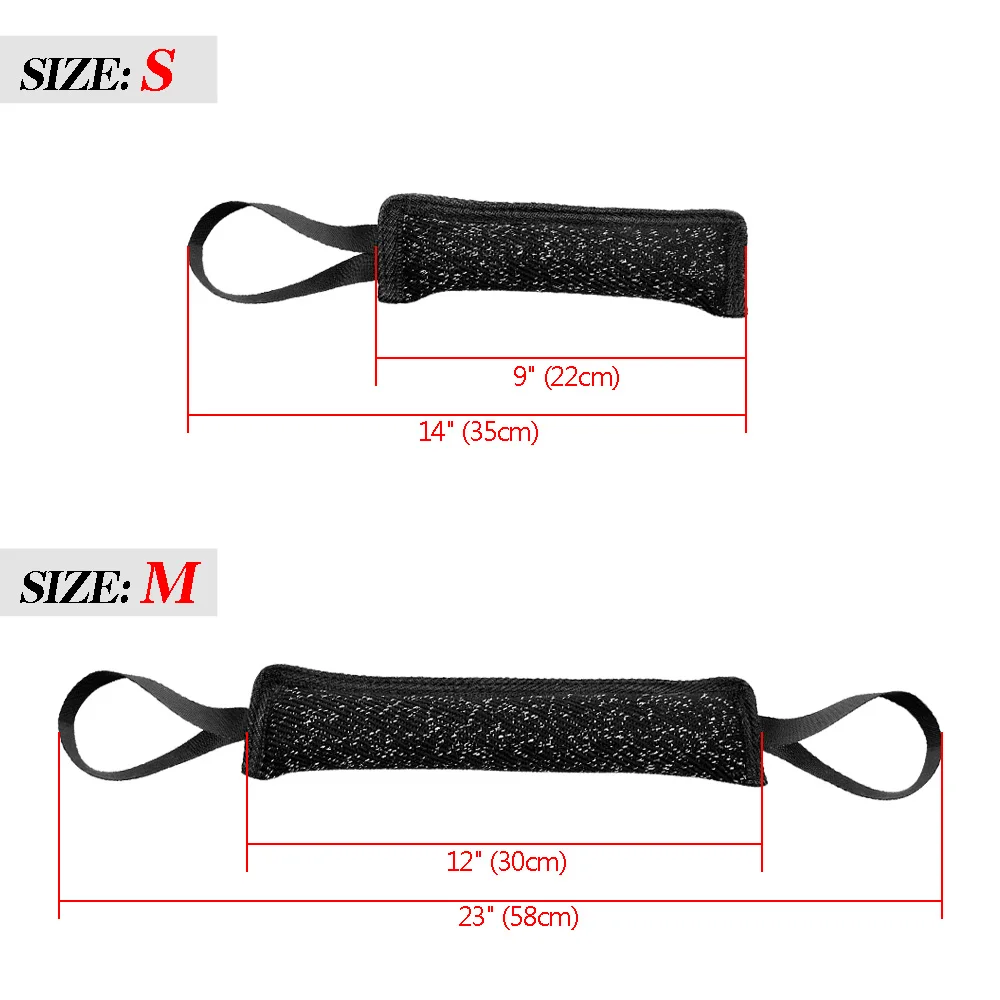 - Dog Training Bite Tugs Puppy Chewing Aid Bite Tags Pet Play Toy is made of bite suit fabric, which is safe for dog teeth and durable.