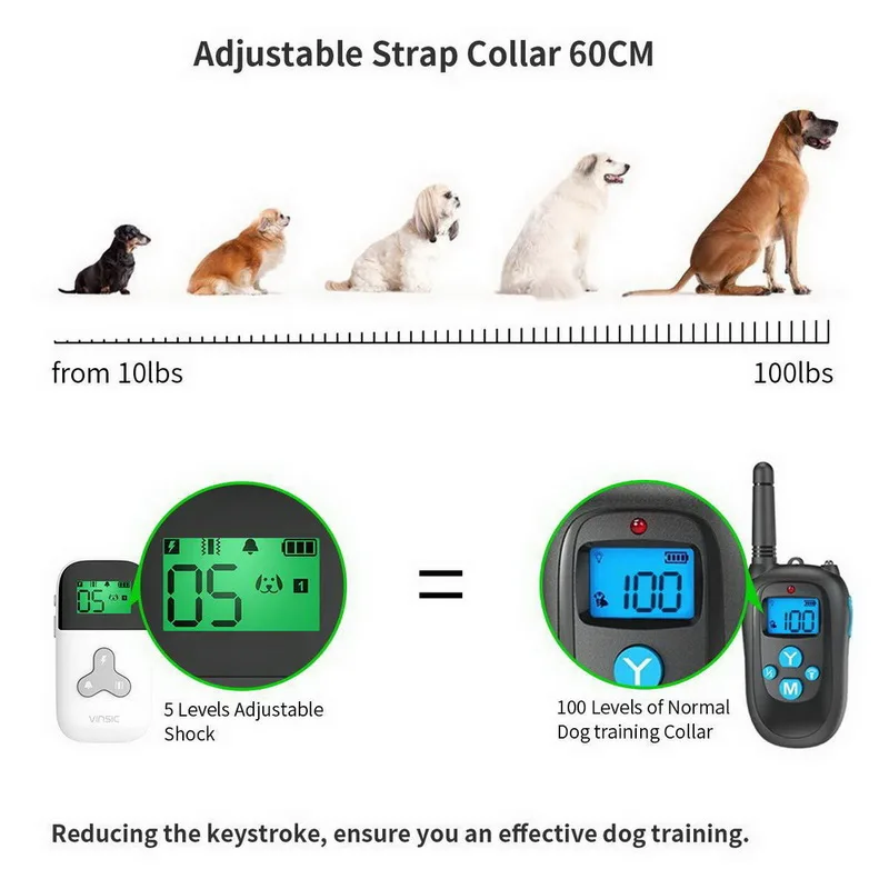 - Attention please, dog hairs are unable to conduct electricity. Thus make sure the belt is tightened and the electric poles touch dog’s skin.